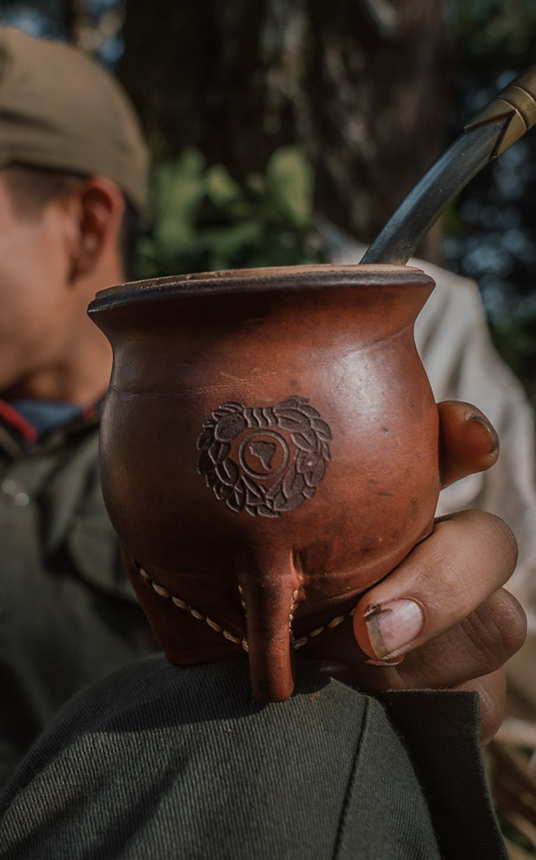 - Then, slowly fill the gourd with hot water on one side, and leave some yerba mate dry so you can mix little by little.