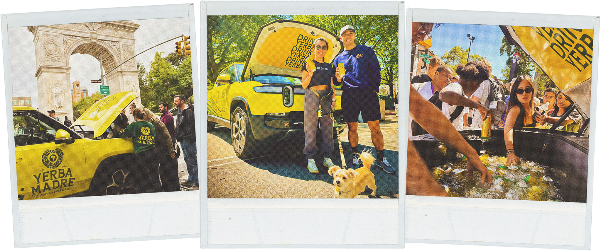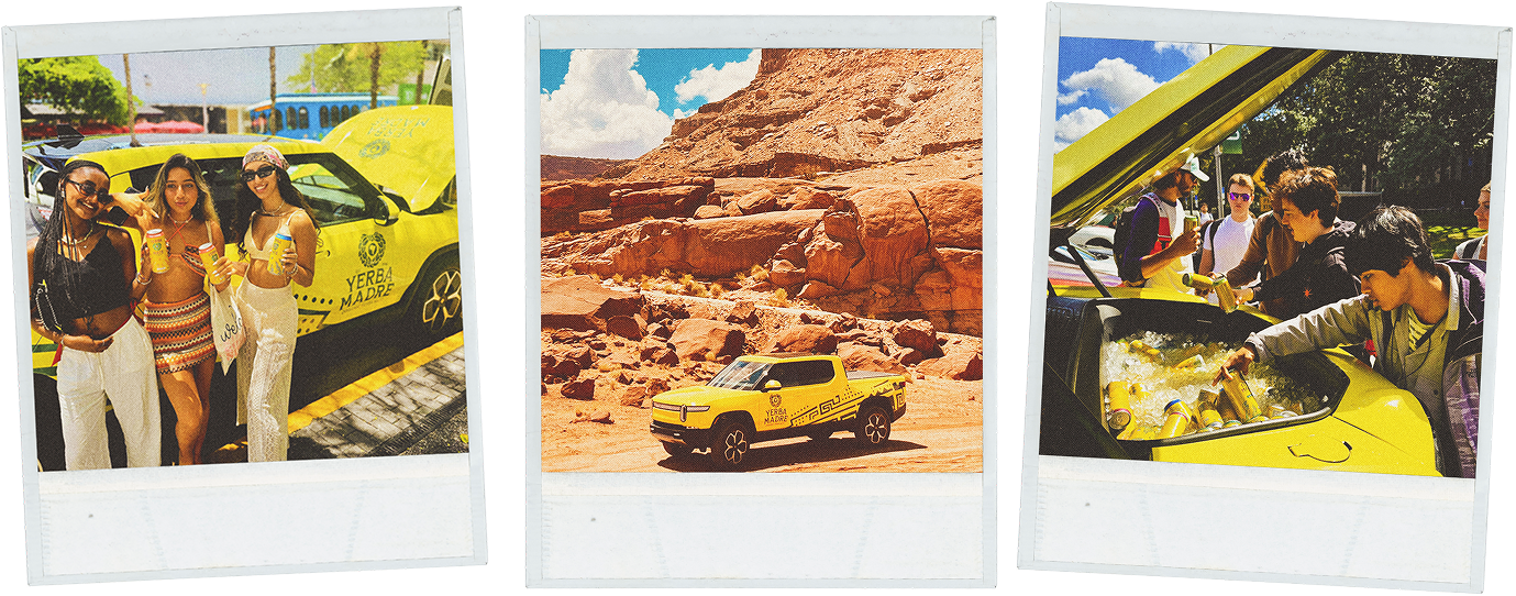 Our custom Rivians are packed with ice-cold Yerba and ready for you to discover your new favorite flavor.