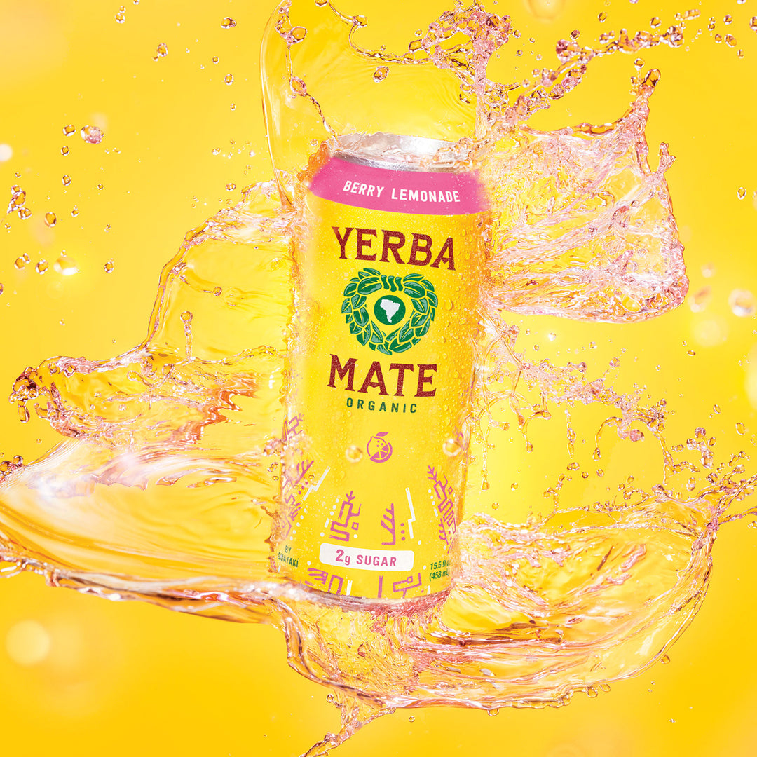 A balanced blend of lemon and strawberry juices and yerba mate without any added sugar.