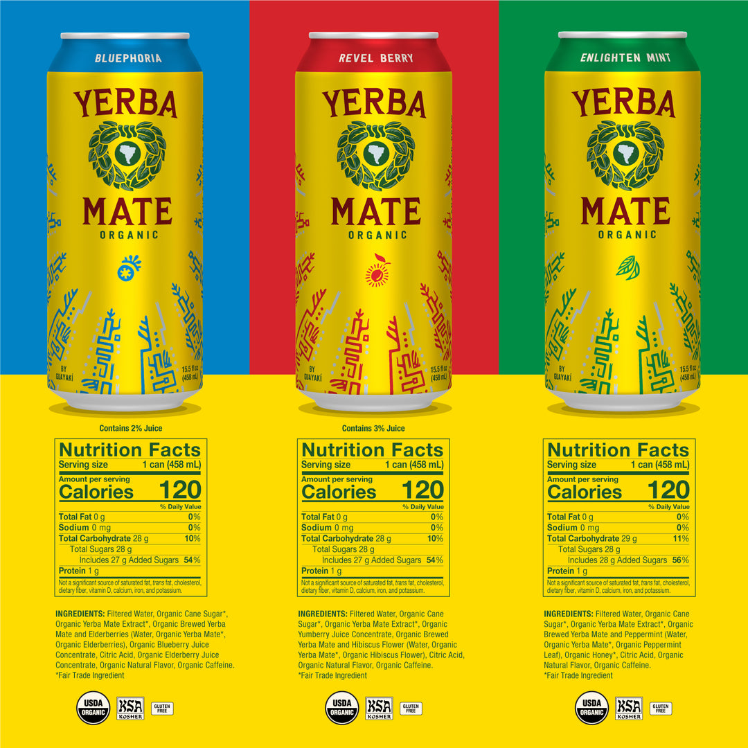 - organic brewed yerba mate and elderberries (purified water, organic yerba mate*, organic elderberries)