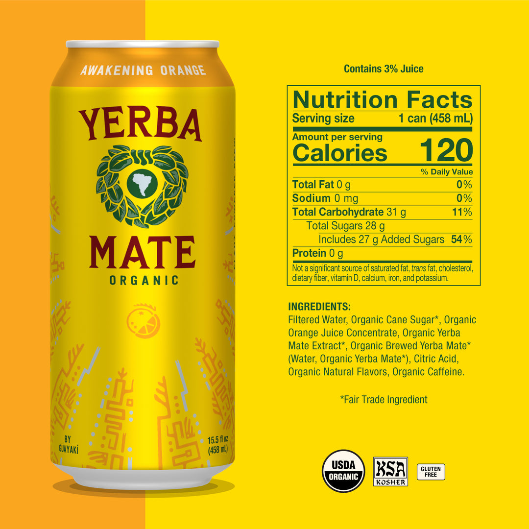 - organic brewed yerba mate and orange peel (purified water, organic yerba mate*, organic orange peel)