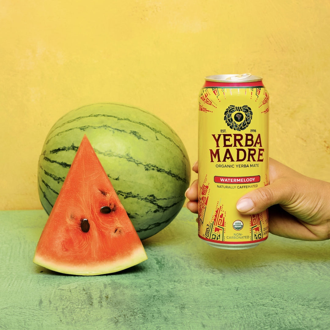 Watermelon and strawberry juices take a vacation with yerba mate and floral hibiscus for a mouth-watering summer flavor experience.