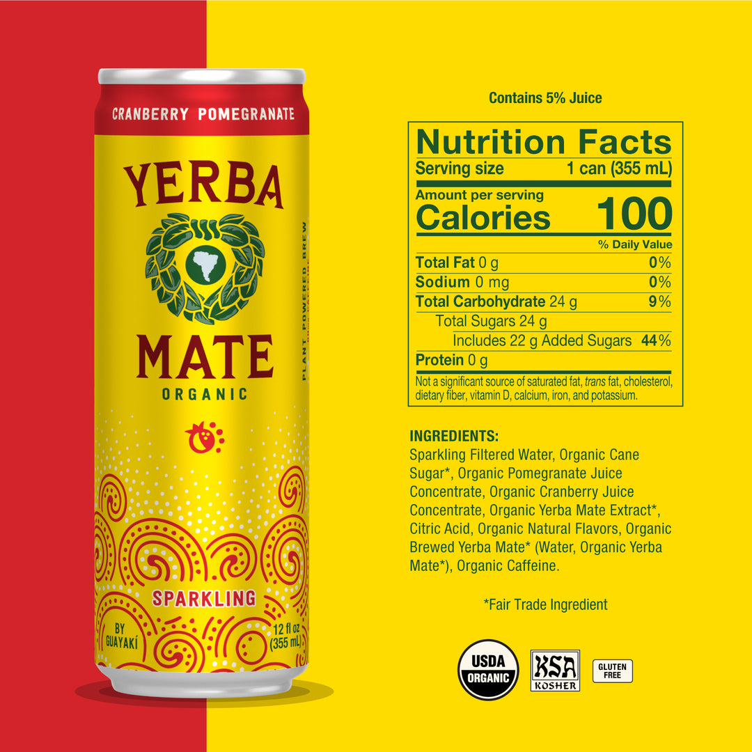 - organic brewed yerba mate* (purified water, organic yerba mate*)